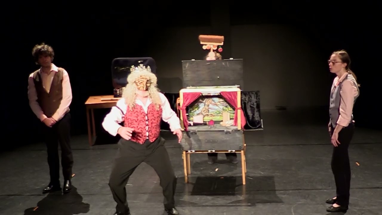 Dans un tourbillon, les comédiens font revivre les personnages incontournables de la tragédie et de la comédie : Maistre Pathelin, Roméo et Juliette, Hamlet, Richard III, Harpagon, Père et Mère Ubu…Jeu, marionnettes, masque, objets animés rien n’est oublié dans ce « glossaire » ambulant.